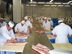 A jövő szakmunkásainak jó szakemberré válását - akárcsak a részvénytársasághoz hűséges dolgozók erkölcsi és anyagi megbecsülését - meghatározó feladatnak tartják mindketten. Másodéves tanulóik évről-évre részt vesznek az országos húsipari szakmunkástanuló versenyen, az idein Dufla Péter képviselte a társaságot. Megtudtuk, hogy szeptembertől húsz másod- és tíz első éves tanuló kezdi meg a szakmai gyakorlatot. Jó hír számukra, hogy a szakmunkásképzésről szóló törvény mostani változása alapján az első félévben minden tanuló a minimálbér legalább 15 százalékának megfelelő pénzbeli juttatást kap, ami az első éveseknél eddig 11, a másodéveseknél 12 százalék volt. Félévenként pedig az előző félévben nyújtott pénzbeli juttatás havi összege legalább tíz százalékának megfelelő emelés jár a tanulóknak. A gyár területén egy önálló kft működik, amely sertéscsontozást végez a részvénytársaság megbízásából. A felszabadult ifjú szakmunkások közül sokan itt folytatják pályafutásukat, a jobb kereset reményében. Az idősebb kollégák közül pedig többen Németországban próbálnak szerencsét, de a legtöbbjük két-három hónap után visszatér a biztos munkát jelentő anyavállalathoz. Szociális ellátásA vállalat minden munkavállalójának ingyenes ebédet biztosít, valamint kedvezményes áron igényelhetnek a dolgozók a cég által előállított hústermékekből. Hetenként - a megrendelések alapján - kettő, öt, tíz kilós egységcsomagokat készítenek, húsos csontból például korlátlan mennyiséget lehet kérni, de a hetven százalékos színhúsból is kielégítik a kérelmezők igényeit. A heti vásárlások árát a tizedikei fizetéskor levonják a megrendelők béréből, amihez ők írásos hozzájárulásukat adják. A cégcsoport a tagvállalatai dolgozóinak - így nekik is - Balatonalmádiban biztosít üdülést. Heti turnusokban három család számára van lehetőség, júniustól szeptember derekáig. Az alkalmazottak egészségének megőrzésében segít a főfoglalkozású, szerződéses viszonyban lévő orvos, aki elvégzi a szükséges munka-alkalmassági vizsgálatokat, szakorvoshoz, laborvizsgálatra küldi a jelentkezőket. Miskolc ipari területén mintegy tíz hektáron fekvő húsipari kombinátban a termelő tevékenységet a sertésvágóban, a kényszervágó részlegben, a készítménygyártó feldolgozó üzemben és az önálló egységként működő csontozóban végzik. Az utóbbiban elsősorban férfiak dolgoznak, de a teljes állományi létszám harmadát a gyengébb nem képviselői teszik ki. Ha a szezonális munka úgy kívánja, a leszabályozott túlórakeret biztosítja a szükséges túlórát és annak díjazását. A hét emeletes irodaépület földszinti bejárójánál egy 1978-ban állított emléktábla emlékeztet az ötszáz éves múltra visszatekintő iparág születésére. Az emléktábla állítása óta eltelt negyedszázad sok örömteli, de gondoktól sem mentes időszakot jelentett a cég életében. Felszámolási eljárás, tulajdonos váltás, létszám csökkentés sorjázott az elmúlt évek eseményei között. Volt időszak, amikor több ezer dolgozónak biztosított munkát és megélhetést a gyár, a szakmunkástanulók száma megközelítette a kétszázat. Újabb időkben, amikor az ötvenezer forintos minimálbér bevezetésre került, a vállalat munkavállalói mintegy felének ez alatt volt a keresete. Azóta viszont új cégcsoport tagjai közé kerültek és Purgel Attila vezérigazgató vezetése mellett stabilizálódott a részvénytársaság helyzete. Termékeik döntő részét Távol- Keletre, Japánba és Koreába exportálják. Naponta ezerháromszáz sertést vágnak. Folyamatos az élőállat beszállítás és érkeznek a kamionok, a pótkocsis teherautók a készáruk elszállítására. A külföldi vevők igényei megkívánják a folyamatosan magas minőségi színvonalú termékek gyártását. Ehhez jelenthet garanciát a hűséges törzsgárda tagok szakmai munkája, megbízhatósága. Sajgó Barna szb-titkár harmincöt év gyári tapasztalatát igyekszik a szervezett dolgozók érdekében hasznosítani, úgy, hogy a gazdasági vezetéssel egyetértésben biztosítható legyen a munkavállalók szociális ellátottsága, munkájuk megbecsülése. Sajgó kolléga az országban működő érdekvédők között is a törzsgárdához tartozik, nem csak szívén viseli a szakma jövőjét, de sokat is tesz érte. Gregor Pál